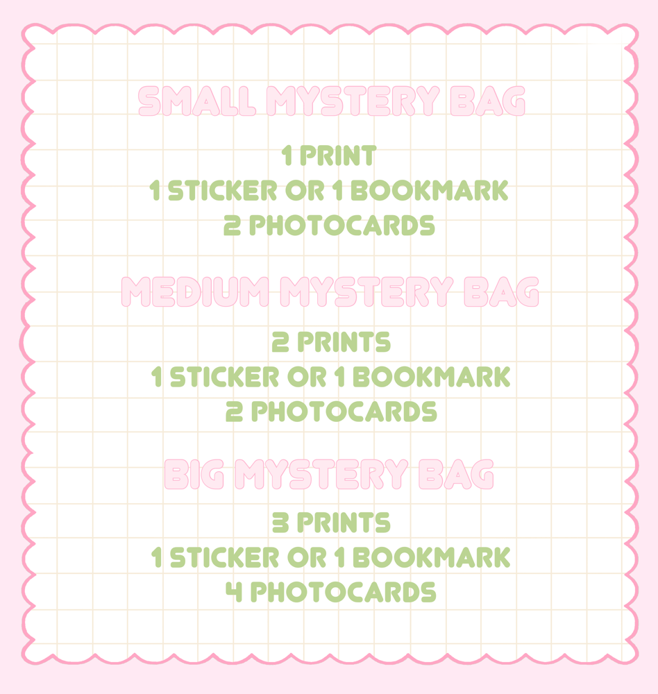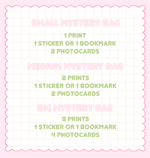 If you love mystery bags and blind boxes you will love these! You can get prints, stickers, bookmarks and photocards at a lower price with this mystery bags.( THESE ARE NOT B GRADE, THEY ARE IN PERFECT CONDITION )